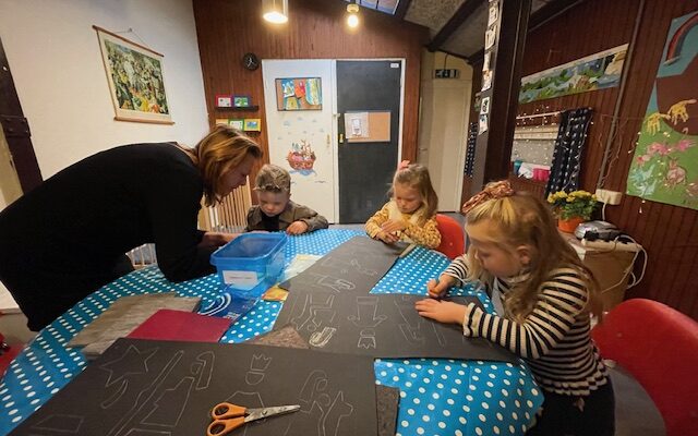 voor de kinderen is er elke week een apart programma. er wordt samen gezongen, gebeden, vertelt uit de bijbel en geknutseld.